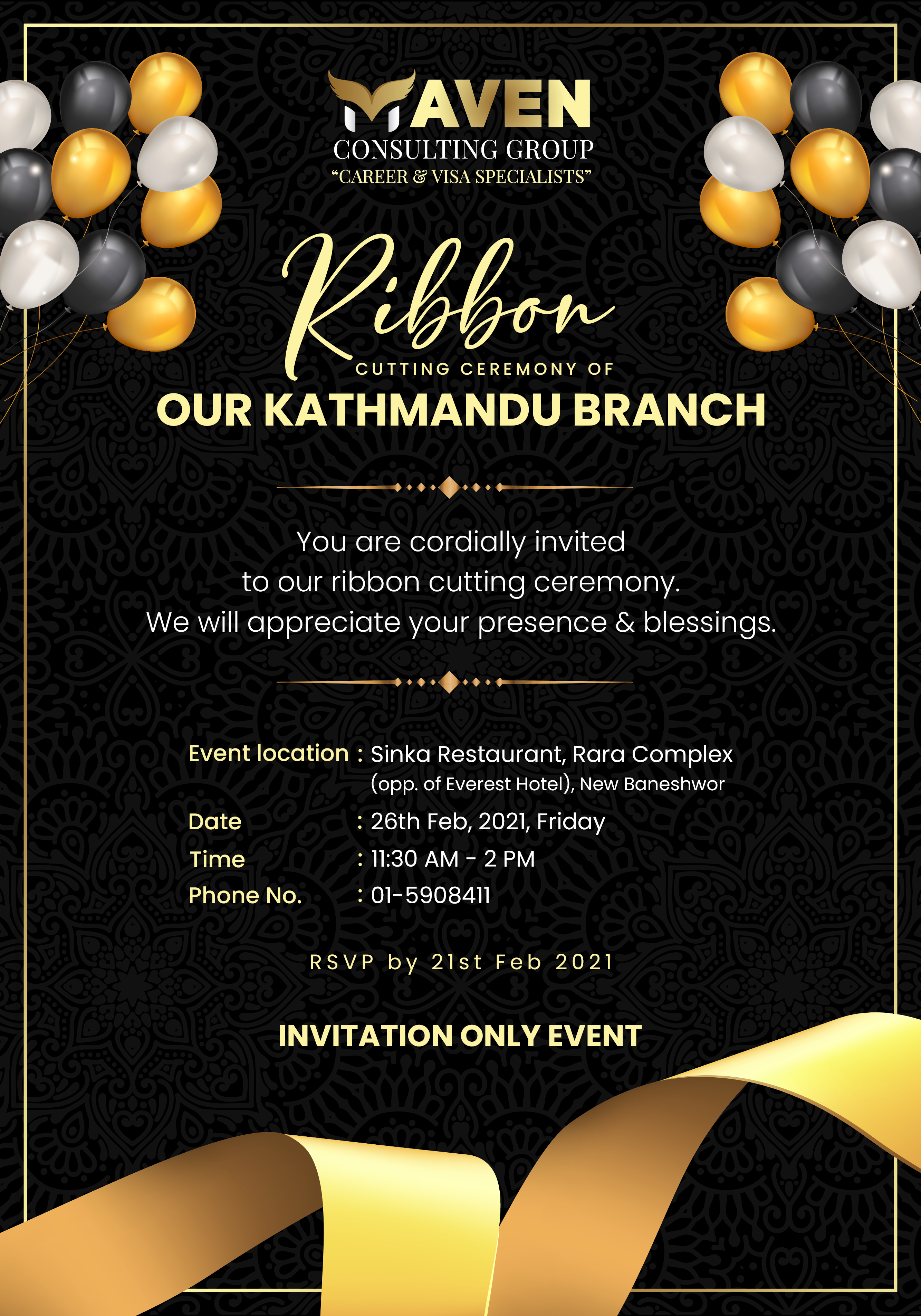 We are having a Ribbon Cutting Ceremony of our Kathmandu Branch. You are cordially invited to the event and we shall appreciate your presence and blessings!